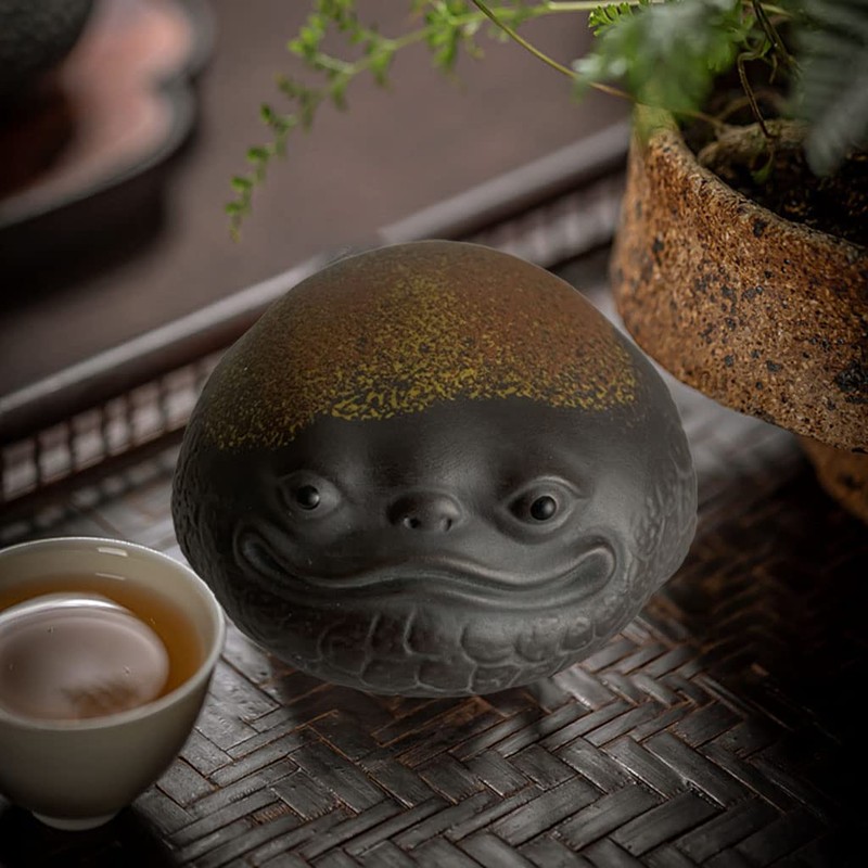 - The golden toad tea pet is made of purple clay, very sturdy and well made