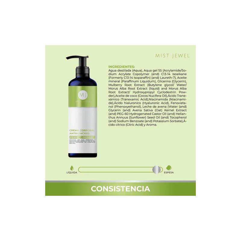 MIST JEWEL Crema Corporal Desmanchante e Hidratante Perfect Pigment con Ácido Tranexámico y Mulberry | Desvanece Manchas, unifica el tono y Aclara la Piel, ideal para zonas intimas, axilas codos 250ml