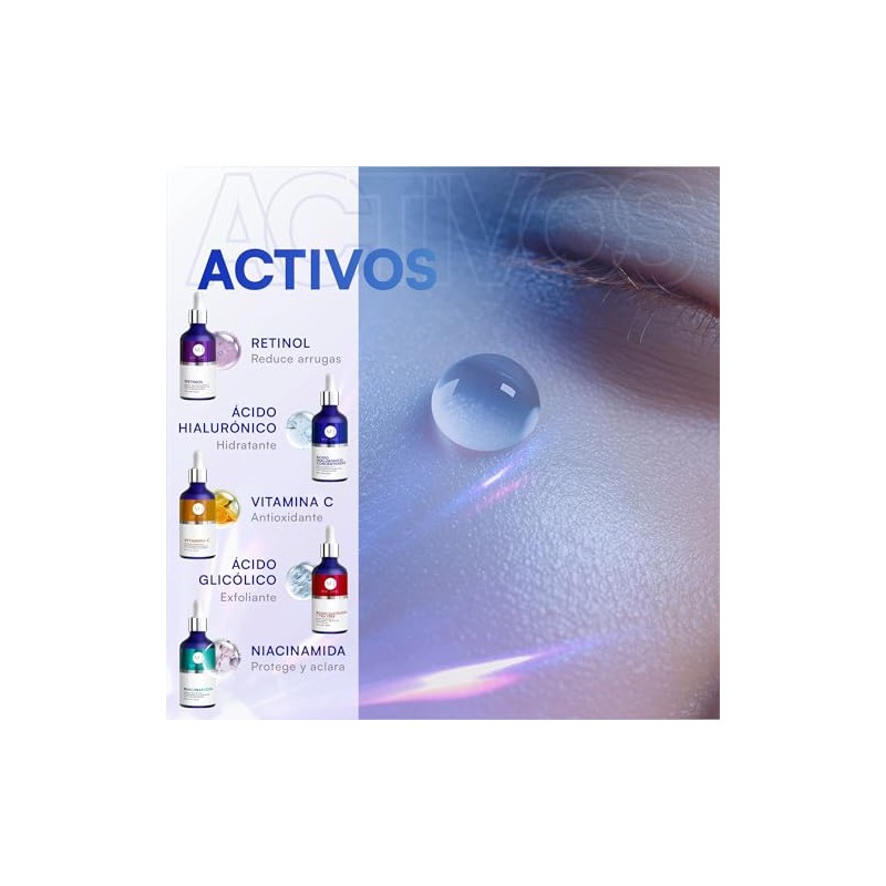 MIST JEWEL - MIST JEWEL Kit sueros faciales Acido Hialurónico, Retinol, Vitamina C + E, Glicólico y Niacinamida | Conjunto de serums Avanzado 5 serum (KIT Facial avanzado). ⭐ Calidad premium certificada con excelentes reseñas. Tecnología avanzada y rendimiento superior. 🏆 Recomendado por expertos. Ideal para quienes buscan lo mejor en calidad y estilo. Producto auténtico con satisfacción total asegurada. ¡No te quedes sin el tuyo y aprovecha esta oportunidad única!