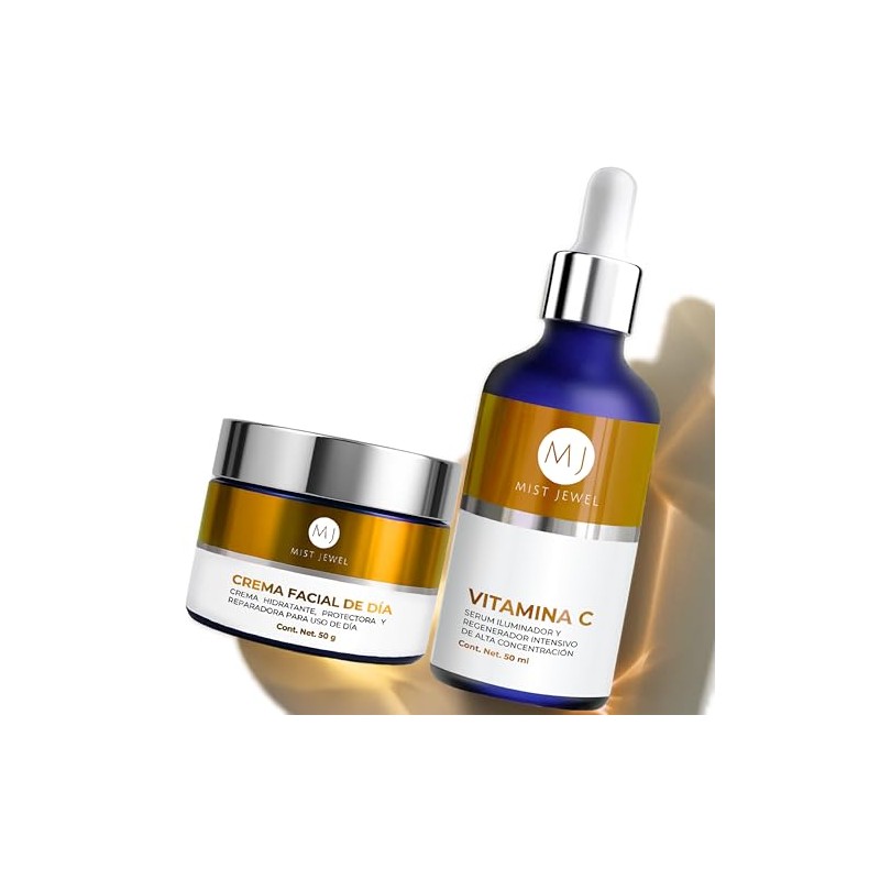 MIST JEWEL - MIST JEWEL Pack Facial con serum Vitamina C + E + Ácido hialurónico y Crema de Día fotoprotectora FPS 30 Ácido Ferúlico y Vit C 50g | Paquete Skincare facial de máxima proteccion e hidratación para el día. 💎 Fórmula premium para resultados visibles y duraderos. Ingredientes naturales seleccionados y testado dermatológicamente. 💎 Calidad superior certificada. Ideal para quienes buscan lo mejor en calidad y estilo. Producto auténtico con satisfacción total asegurada. ¡No te quedes sin el tuyo y aprovecha esta oportunidad única!