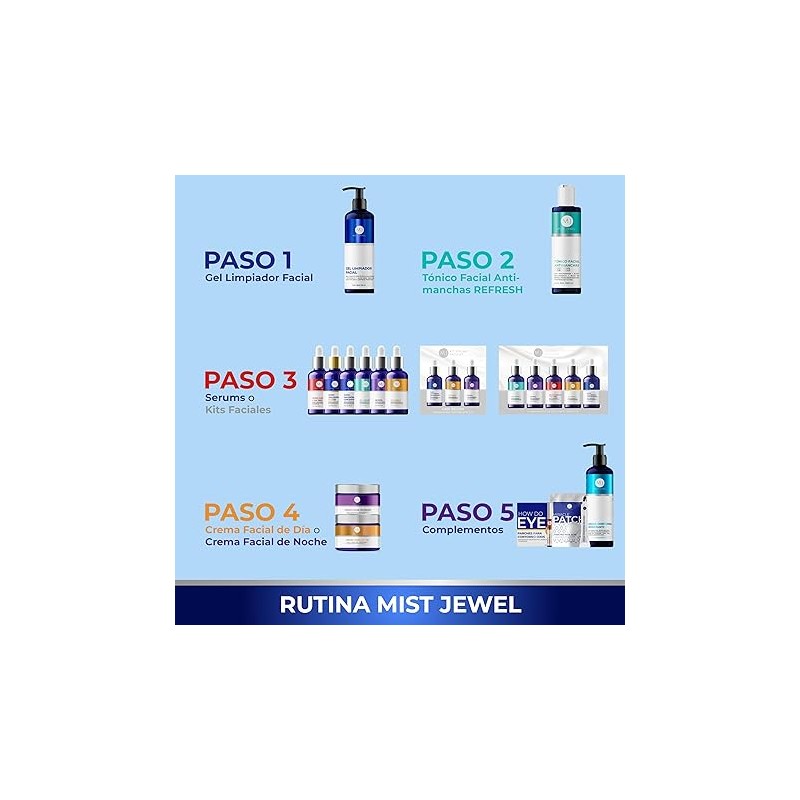 - USO Y APLICACIÓN: Se deben colocar 2-3 gotas en la cara y esparcir uniformemente, dejar secar (3-5 min). Ya que es un auxiliar en el tratamiento para nutrir y regenerar, se puede utilizar en conjunto con cremas y serum faciales Mist Jewel para mujer y hombre con contenido de Colágeno, Ácido hialurónico, Niacinamida y Vitamina C entre otros.