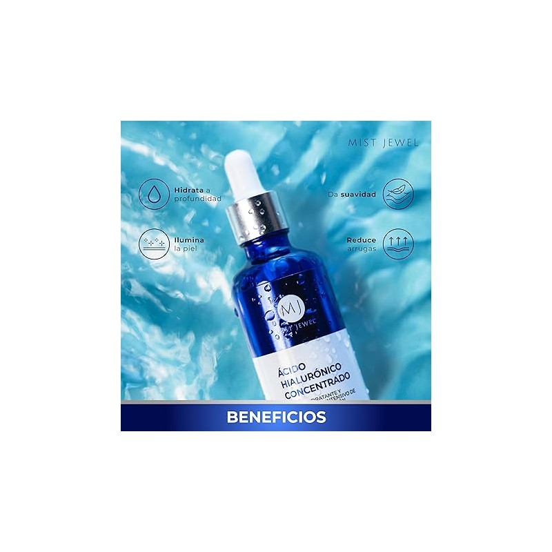 MIST JEWEL Serum Acido hialuronico facial concentrado para arrugas antiedad | Hyaluronic acid suero para el rostro de alta concentración hidratante intenso y rejuvenecedor 50ml (AH Concentrado)
