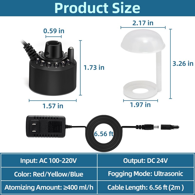 Mist Maker Size(Diam. * H): 1.57 * 1.73 inch
