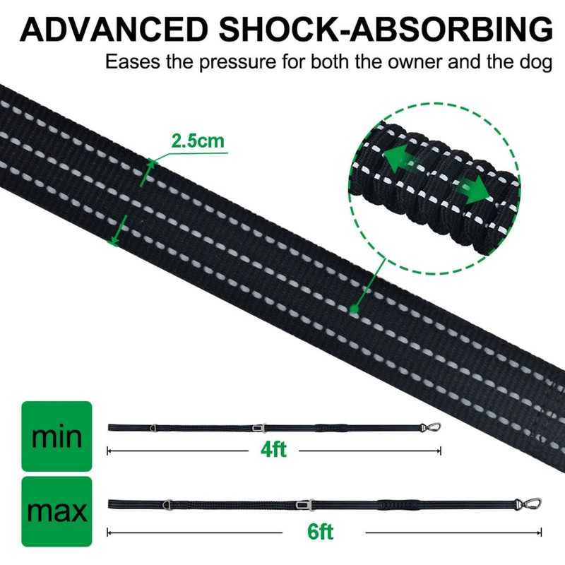 - 【4ft-6ft Bungee Dog Leash】 - The wear resistant bungee dog leash is made of durable nylon, strong and solid enough to withstand the pulling force of large dogs up to 150 LB, and the elastic 4-6 feet length is the most perfect balance between freedom and control, perfect for walking training and running.