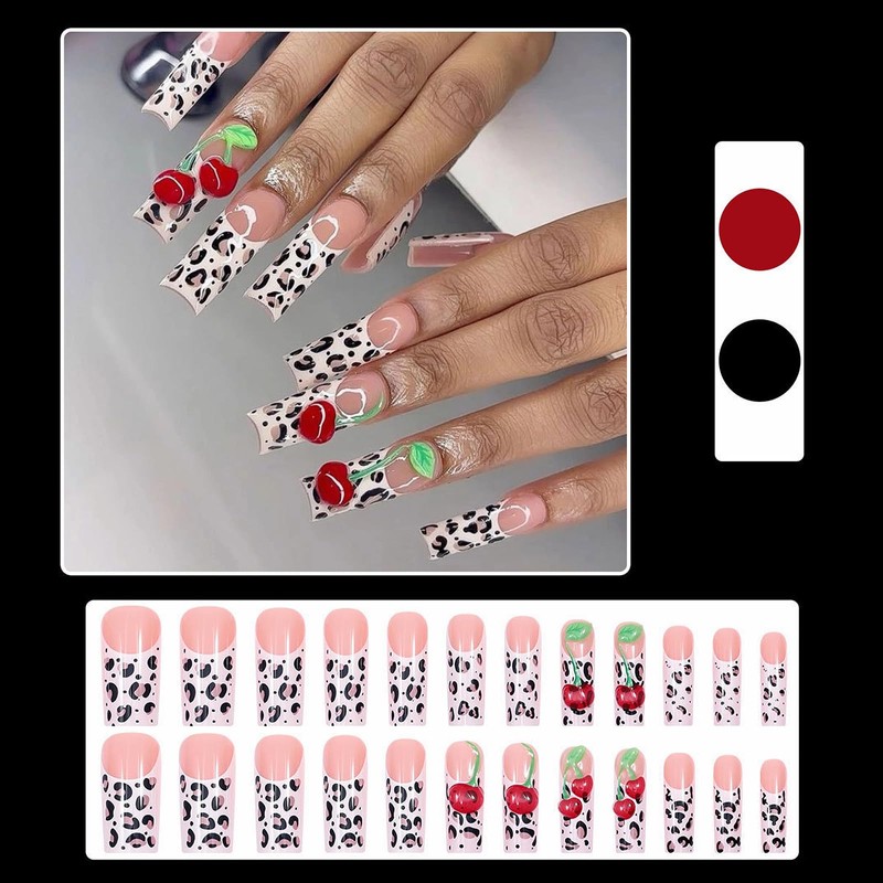 - 【Unique Design】 According to the most popular elements of the moment, these long square press on nails are designed with cheetah french tip and 3d cherry.
