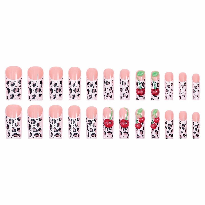MISUD Press on Nails - Long Square Glue on Nails with Chettah French Tip, Acrylic 3D Cherry Design 24 pcs