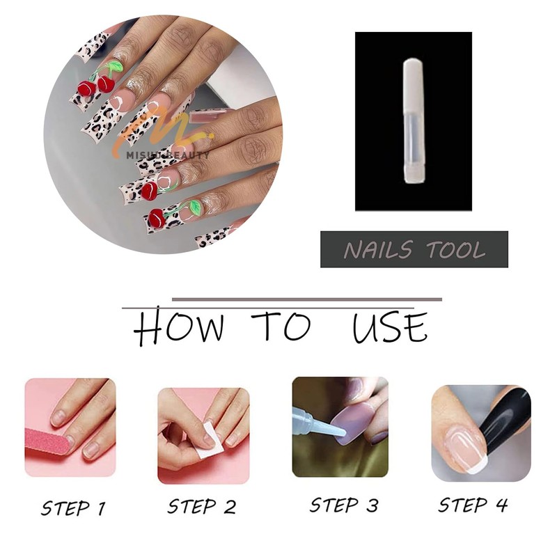 3.Select a right size of the nail, apply the glue to the back of the nail and put it on your fingernails.