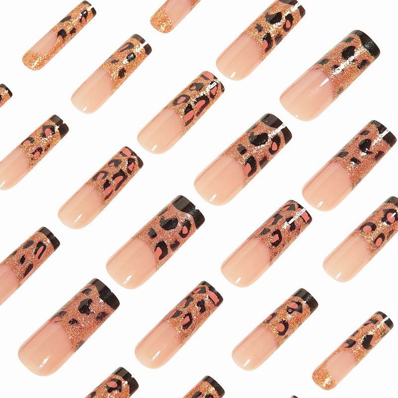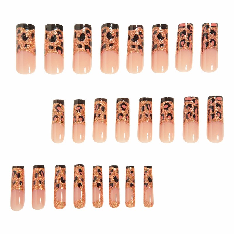 • 【Unique Design】 According to the most popular elements of the moment, these long square press on nails are designed with bling gold glitter and cheetah.