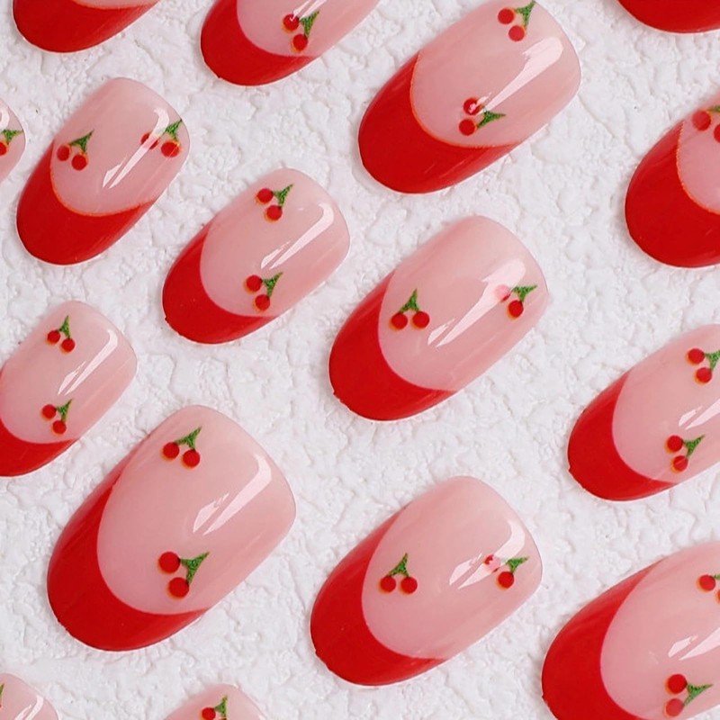 - 【Unique Design】 According to the most popular elements of the moment, these short oval press on nails are designed with red french tip and cute cherry.