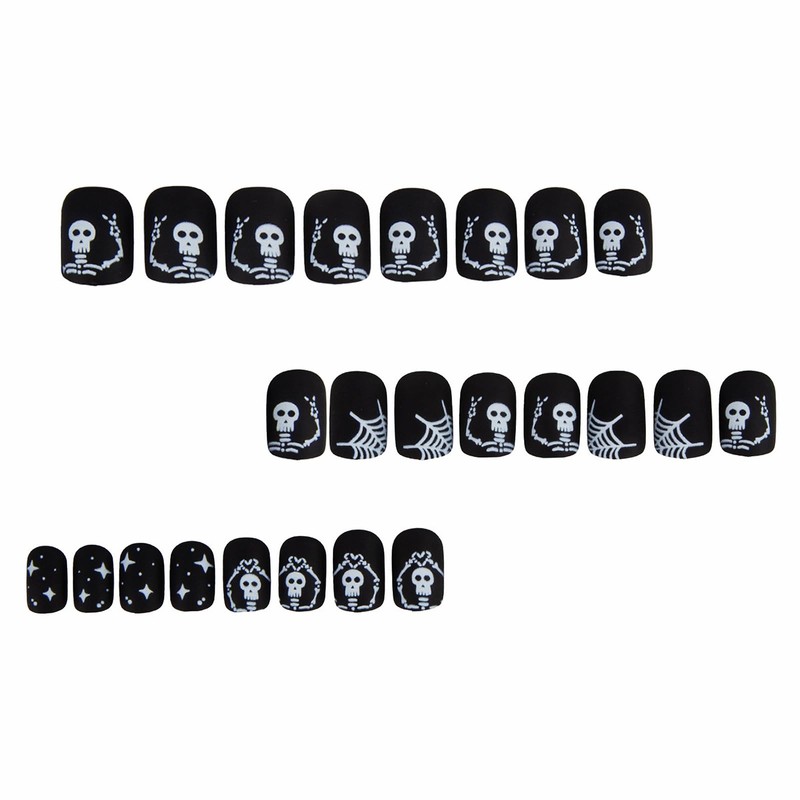 - 【Unique Design】 According to the most popular elements of the Halloween, these short square press on nails are designed with matte goth black, scary skull and sipder web.