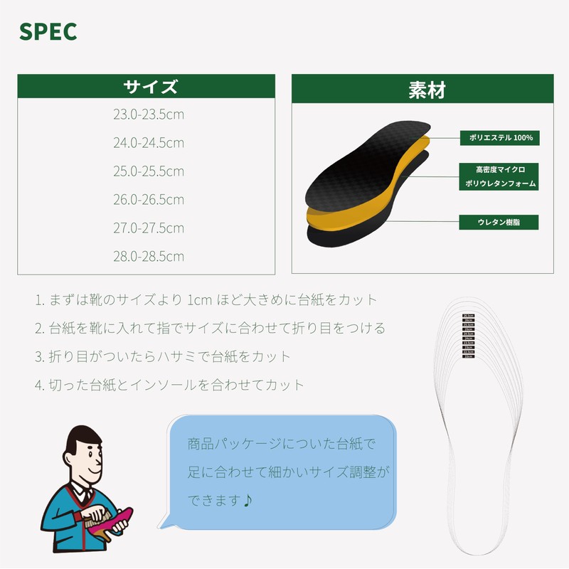 Poron is a high-density and fine microcell polyurethane foam that conforms to the shape of your foot and disperses body pressure for comfortable walking. With a thickness of 0.1 inch (3 mm), it can be used on a variety of shoes, including boots, sneakers, business shoes, flats, etc.