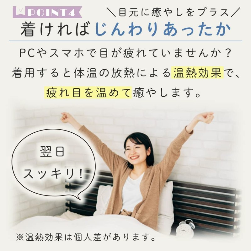 - (Warm material makes your eyes feel tired. When you wear it, you can keep your eyes clean with the heat effect! Heats and heals tired eyes