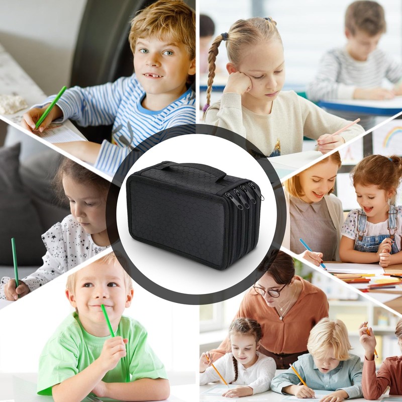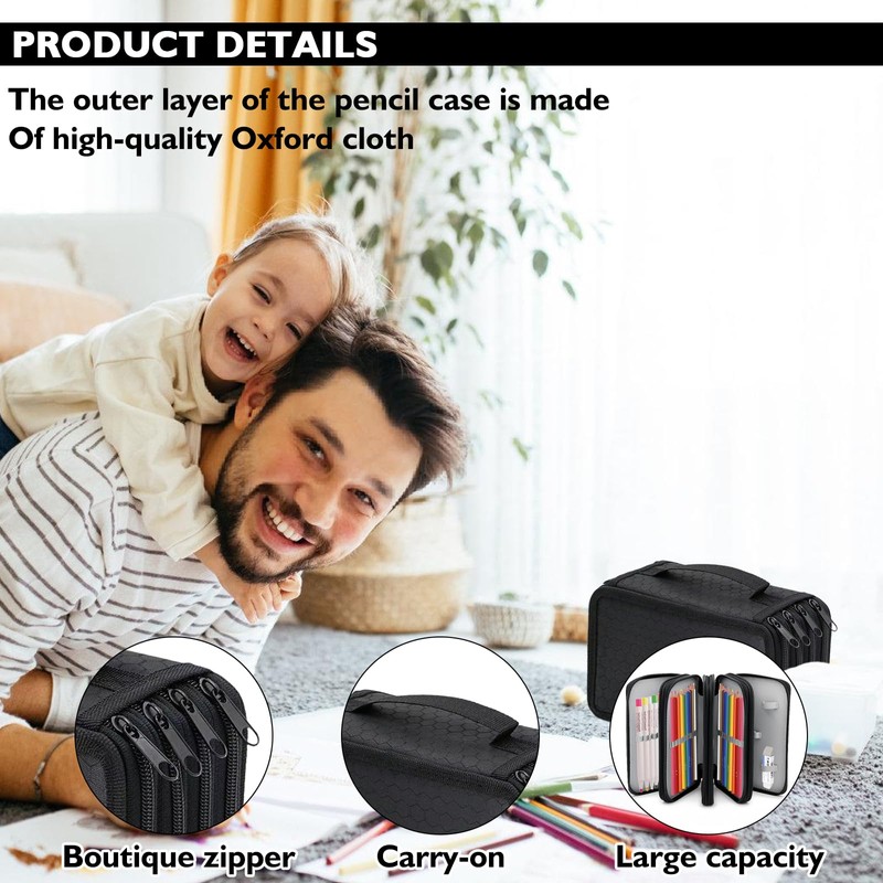 Mitening Pencil Case Pencil Case 72 Slots Portable Pencil Case Pencil Bag Handheld Pen Bag 4 Compartments Large Capacity Coloured Pencils Holder Pencil Case with Zip Case, black, Casual