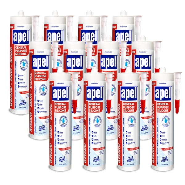 Mitreapel Multipurpose 100% Silicone Sealant (12 x 7.7 fl oz) Clear Waterproof - 12 Pack