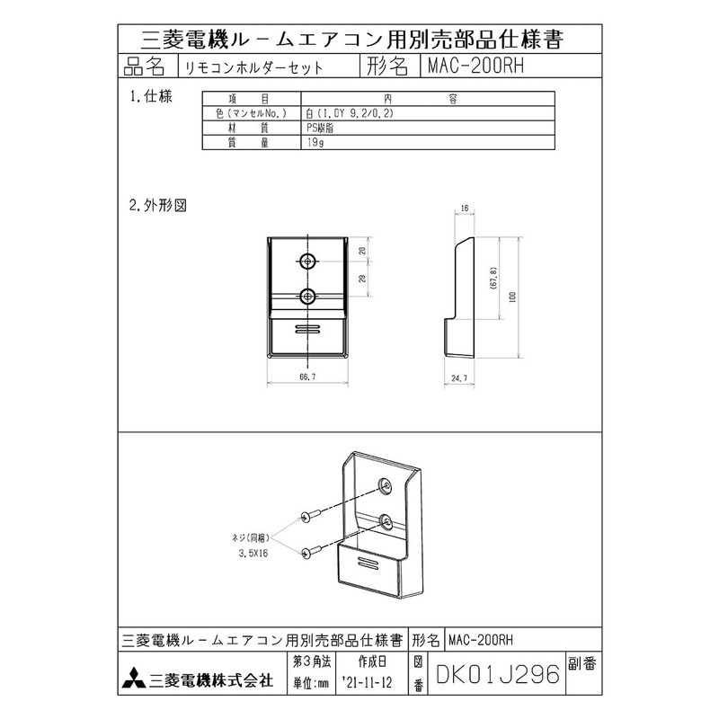 Mitsubishi Electric MAC-200RH Remote Control Holder