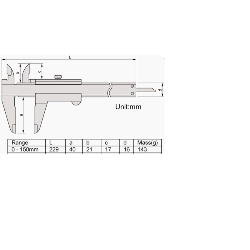Mitutoyo 530-101 Vernier Calipers, Stainless Steel, for Inside, Outside, Depth and Step Measurements, Metric, 0"/0mm-150mm Range, +/-0.05mm Accuracy, 0.05mm Resolution, 40mm Jaw Depth