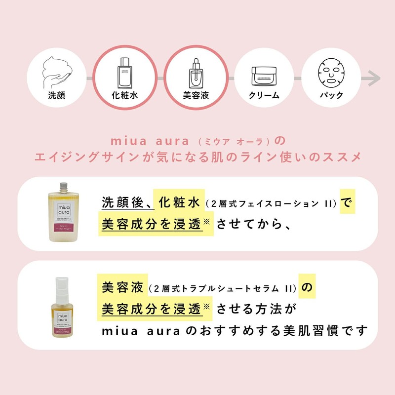 • エイジングサインが気になる肌専用の美容液 miua aura ミウアオーラ 2層式 トラブルシュートセラム II 30ml