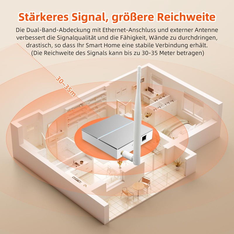 - ๐ก ๐๐๐ง๐๐ก๐ฆ๐๐๐ซ๐ ๐๐ง๐ญ๐๐ง๐ง๐ ๐รผ๐ซ ๐ฆ๐๐ฑ๐ข๐ฆ๐๐ฅ๐ ๐๐๐ข๐๐ก๐ฐ๐๐ข๐ญ๐๏ผZigBee Gateway mit externer, abnehmbarer und um 360ยฐ drehbarer Antenne - ermรถglicht eine stabile Verbindung zu Tuya ZigBee-Gerรคten und sorgt fรผr eine zuverlรคssige Signalreichweite in Wohnungen/Hรคusern und minimiert Wandstรถrungen.