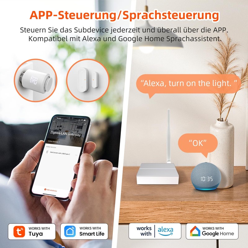 - ๐ ๐๐ญ๐๐ฎ๐๐ซ๐ญ ๐๐ข๐ฌ ๐ณ๐ฎ ๐๐๐ ๐๐ฎ๐ฒ๐ ๐๐ข๐ ๐๐๐ ๐๐๐ซรค๐ญ๐ ๐ ๐ฅ๐๐ข๐๐ก๐ณ๐๐ข๐ญ๐ข๐ ๏ผNur kompatibel mit Tuya Ecosystem! Steuern Sie ausschlieรlich Tuya-zertifizierte ZigBee Gerรคte wie Lampen, Steckdosen, Sensoren und Thermostate รผber die Tuya App (Smart Life / AVATTO) โ keine Kompatibilitรคt mit anderen ZigBee รkosystemen .