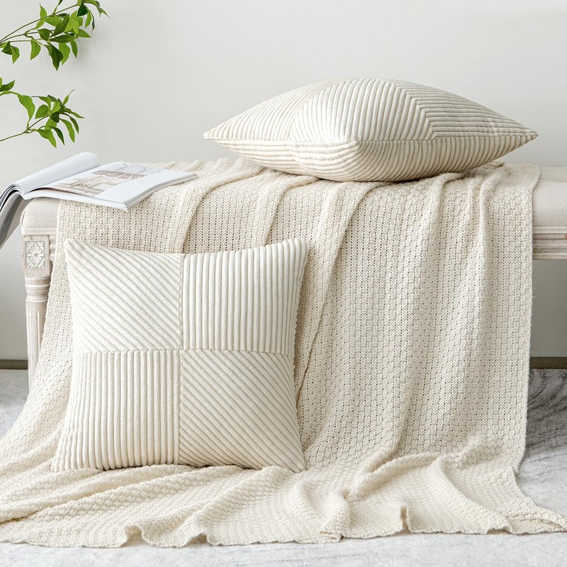 - ELEGANT DESIGN: This decorative cushion cover has a very luxurious and beautiful appearance. The patchwork stripe design is full of fashion sense and can be well matched with different styles. The zipper of the cushion cover is hidden to make the decorative pillows look more beautiful while also easy to put on or take off.