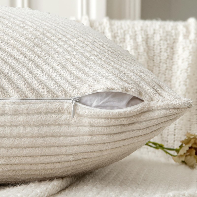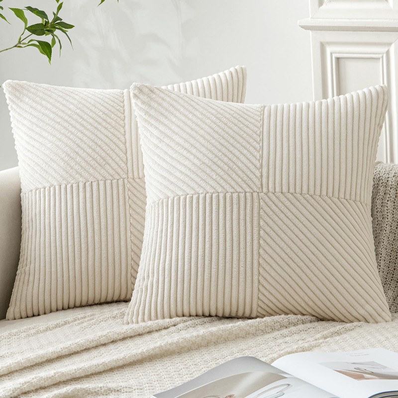 MIULEE Cushion Cover 40 x 40 cm, Cream Corduroy, Set of 2 Cushion Covers, Decorative Cushion Cover, Sofa Cushion, Decorative Cushion, Striped Pattern, Irregular Design for Living Room