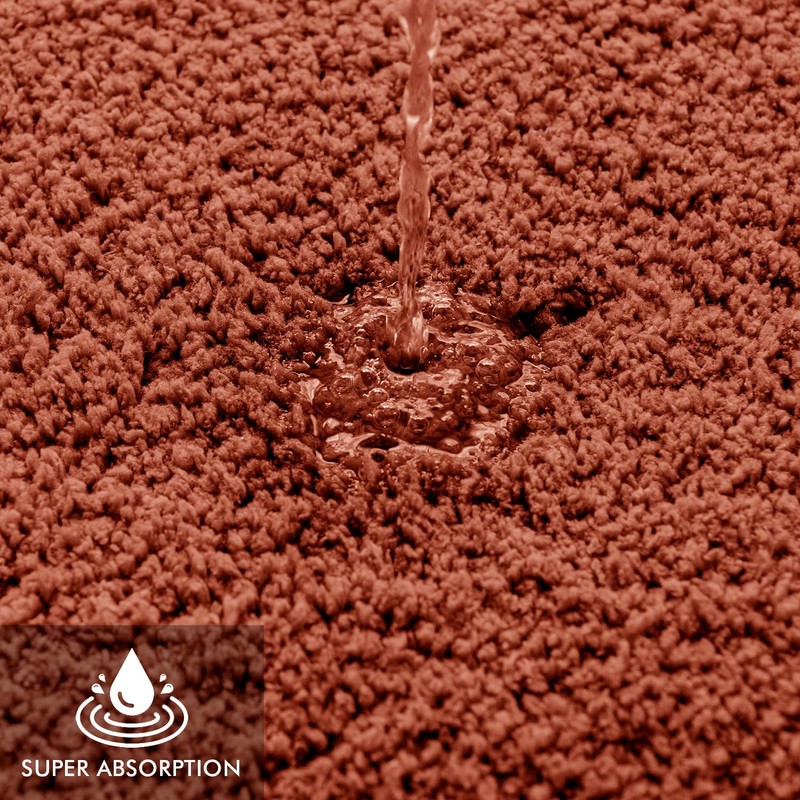 - ULTRA ABSORBENT:When you step out of your shower, you will be amazed at how it soaks up water really well. This fluffy microfiber fabric has dense pores, which can absorb water more quickly and greatly than ordinary bath mats, and instantly separate dry and wet.