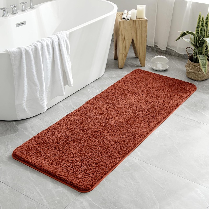 MIULEE Fall Rust Extra Thick Non Slip Bathroom Rug Shaggy Soft Bath Mat Plush Microfiber Absorbent Water for Shower Tub Machine Washable (24x70 Inches)