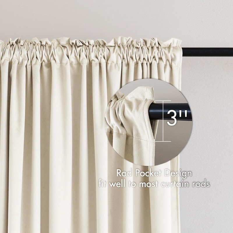 - FUNCTION: Thick and heavy blackout curtain drapes can block 60-80% of the sunlight (the darker color works better).These velvet curtains can also reduce noise,stay temperature down in summers,keep cold wind out in winters to achieve smart energy saving and provide privacy as well.