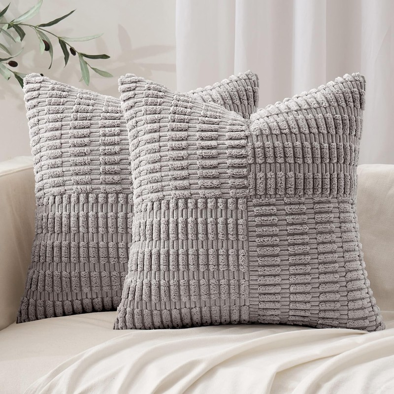 MIULEE Light Grey Corduroy Pillow Covers Pack of 2 Boho Decorative Spliced Throw Pillow Covers Soft Solid Couch Pillowcases Patchwork Textured Cushion Covers for Living Room Sofa 18x18 inch