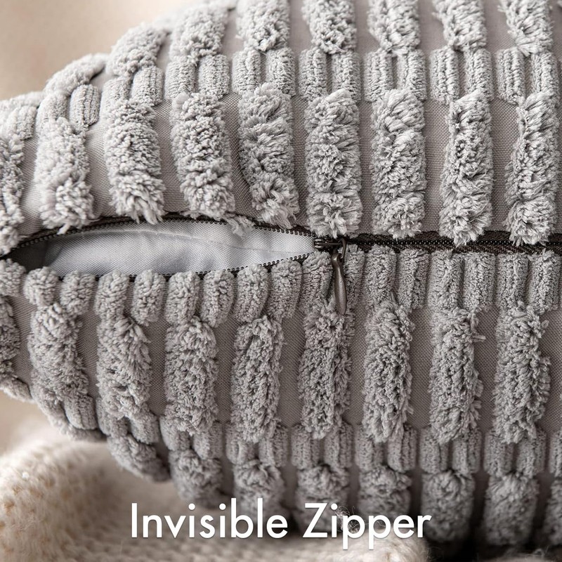 • HIDDEN ZIPPER:The invisible zipper is sewn the pillow covers for a beautiful look; Including two 18x18 inch Light Grey pillow covers without inserts; Please allow 1~2 cm deviation because of hand-cutting and sewing