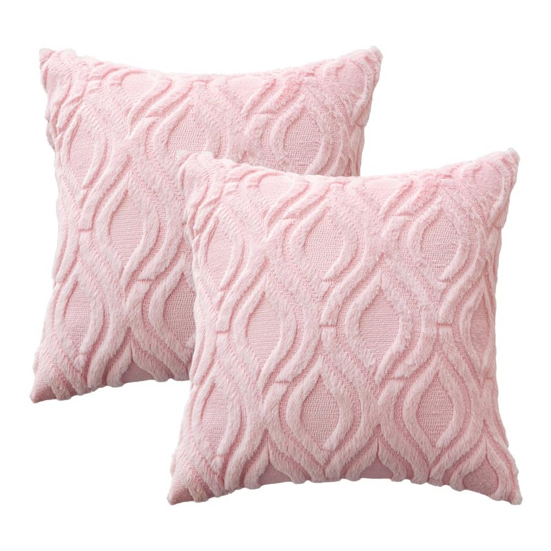 MIULEE Light Pink Throw Pillow Covers 20x20 Inch, Soft Plush Faux Wool Couch Pillow Covers Set of 2 Decorative Farmhouse Boho Throw Pillows for Sofa Living Room Bed