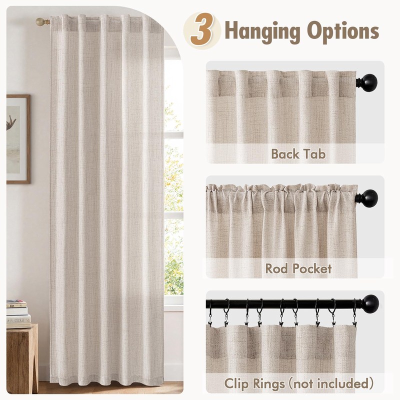 - Ready Made: Package contains 2 panels tier curtains, each panel measures W30''xL36'', each set W60''xL36'' . 3 hanging options to meet your needs: rod pocket, back tab, or hanging ring (clips or hooks not included).