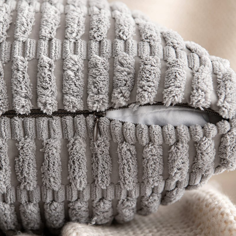 MIULEE Pack of 2 Corduroy Decorative Euro Sham Throw Pillow Covers 22x22 Inch Soft Boho Striped Pillow Covers Modern Farmhouse Home Decor for Sofa Living Room Couch Bed Light Grey