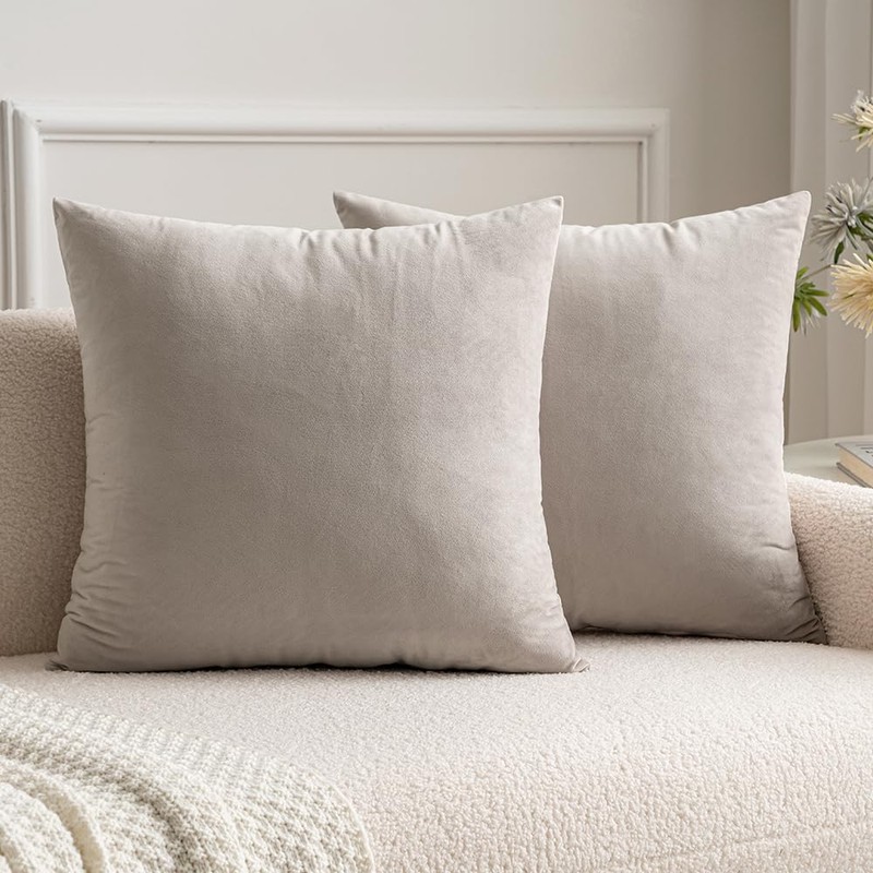 MIULEE Set of 2 Velvet Soft Solid Decorative Square Scatter Cushion Covers, Cushion Case, for Sofa, Bedroom, 40 x 40 cm, Heart Wood (Light Brown)