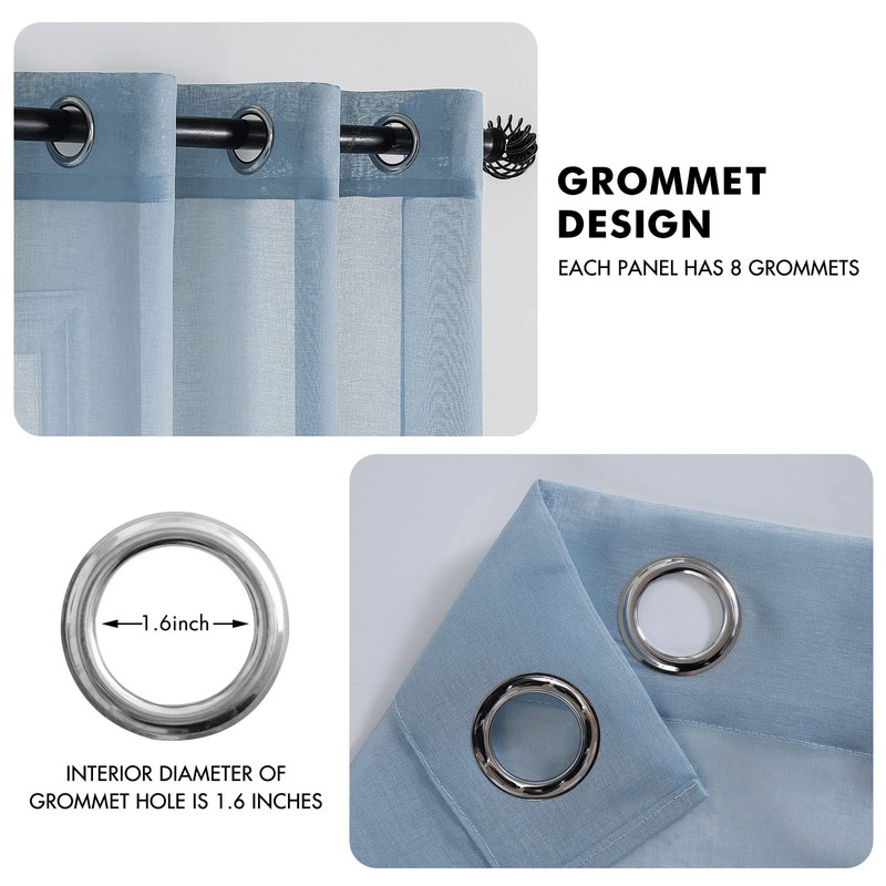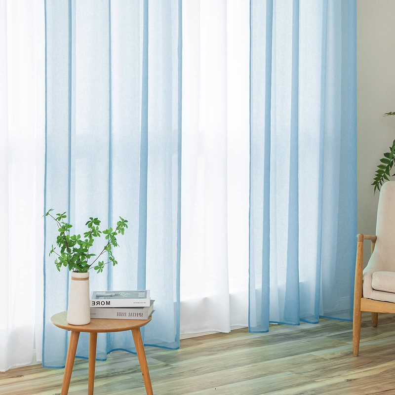 MIULEE Sheer Voile Curtain with Eyelets, Christmas Decoration, Transparent Look Curtain, Curtain for Bedroom, Living Room, 140 x 300 cm (W x H), Set of 2, Dusty Blue