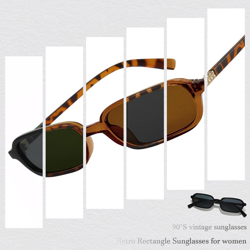 - 【EXPERIMENTAL SUNGLASSES SHAPES】Rectangular retro sunglasses for women is all about avant-garde metal hinge and experimental shapes, push the boundaries of traditional sunglasses design. If you go for pieces that feel easy and classic , try to add an unexpected element of the narrow square vintage sunglasses