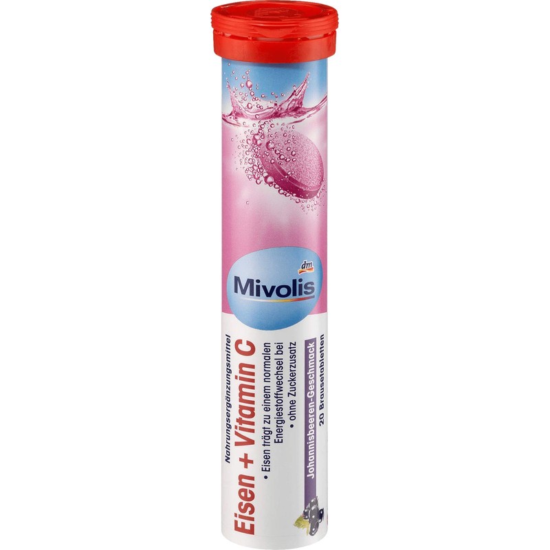 - The Mivolis Iron + Vitamin C effervescent tablets with cassis flavor and sugar-free;