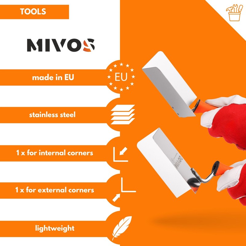 Mivos 2 x Corner Trowel Rustproof 120 x 60 mm - Inner Corner Trowel and Outer Corner Trowel Made of Stainless Steel - Inside and Outside Edge Trowel with Soft Grip - Corner Spatula Made in EU