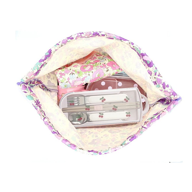 miwaki Lunch Bag, Drawstring Bag, Medium, Girls, Lunch Box, Cup Holder, Elementary School, Kindergarten, Nursery, Made in Japan, Handmade with Name Tag, Motif, Purple, Lavender, Dot Picture, Princess,