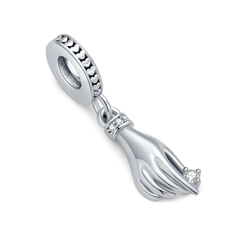 1.Classic Hand-Shaped Pendant:The charm is crafted in the shape of a hand, representing the gesture of holding and cherishing. The detailed design includes fine lines and contours that make the hand look lifelike and elegant.