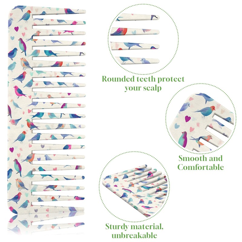 Miwasion 2PCS Wide Tooth Comb, Large Detangling Hair Comb - Glides Through Tangles with Ease, Cute Wide Tooth Comb Without Handle, Easy for Girls, Women, Men, Curly, Wet & Dry Hair(18-Bird-Flower)