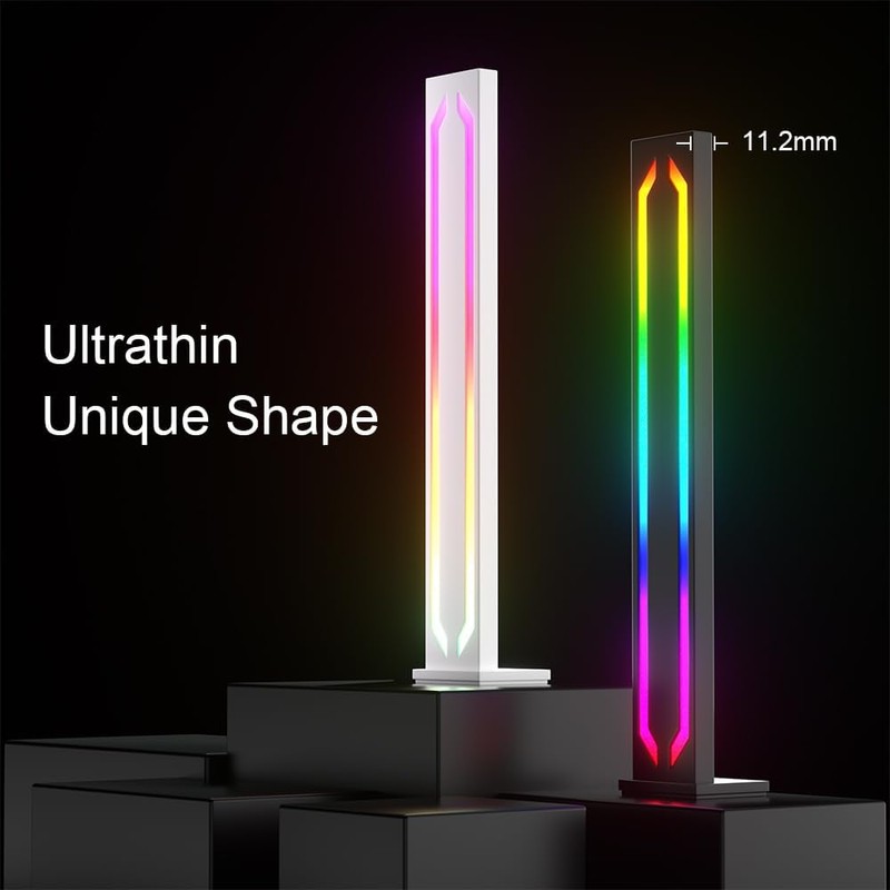 MIWATT 28CM White Light Bar RGBIC Lamp, 2-Piece Smart RGB Gaming Light, Metal Aluminum Housing with App Control and Music Sync Rhythm Mode, Warm Tone Ambient Lighting