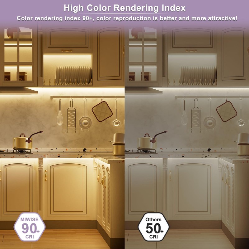 - High CRI, Enhanced Visual Effects: CRI 93+, MIWISE CCT COB LED strip light has excellent color reproduction, making objects more realistic and vivid! The high CRI can relieve visual fatigue and allow your eyes to relax comfortably!