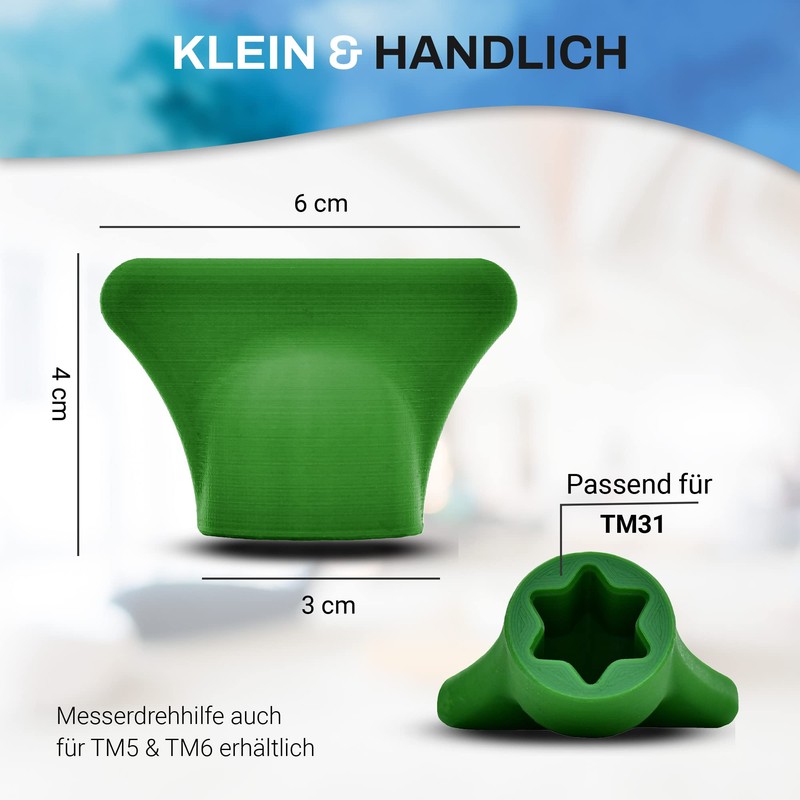 - Rotating aid suitable for TM31 – The dough turner is made to fit the knife of the Thermomix TM31 and makes it easier to loosen the dough