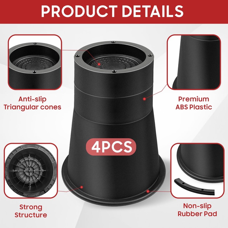 - ✔ Anti-Slip Strips -- The bottom of each furniture riser is equipped with 4 non-slip rubber strips, which can prevent the furniture from sliding and protect the floor