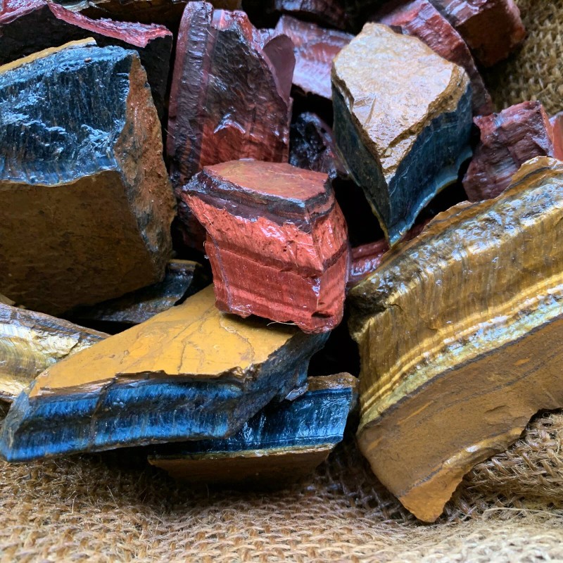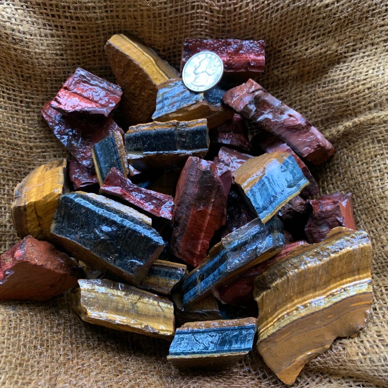 MIXED Tiger Eye Rough (RED, BLUE, GOLD)- 2000 Carat Lots+a FREE Faceted Gemstone