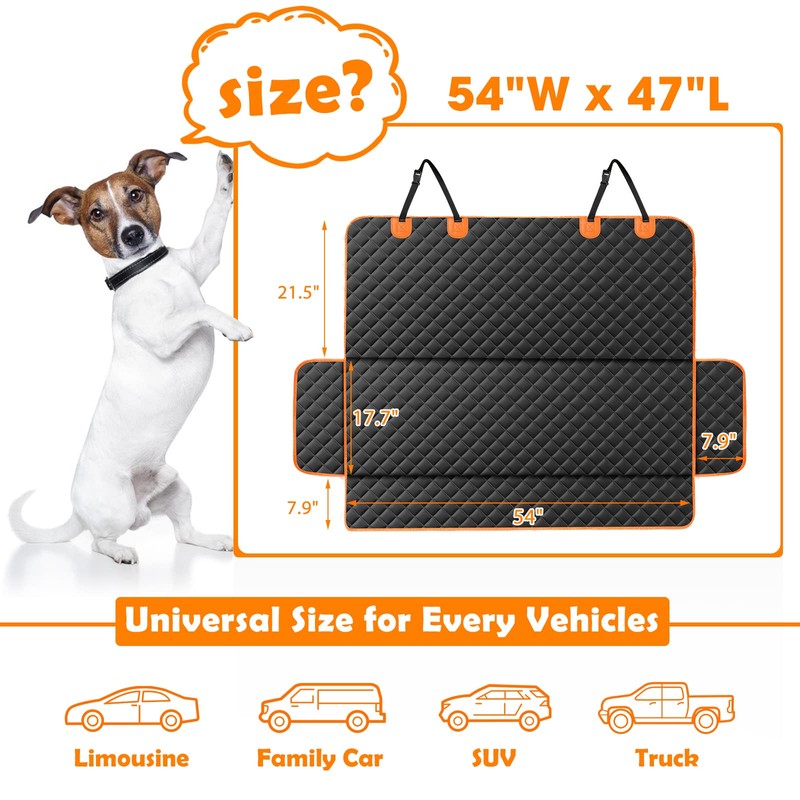 - Applicable to your carPerfect size of 53"W x 47"L fits most standard cars, trucks and SUVs, including baby car seats. Suitable to small and medium-sized dogs. The dog seat covers for cars will not be too big or too small, so that your dog and children feel uncomfortable or can not protect your seat well.