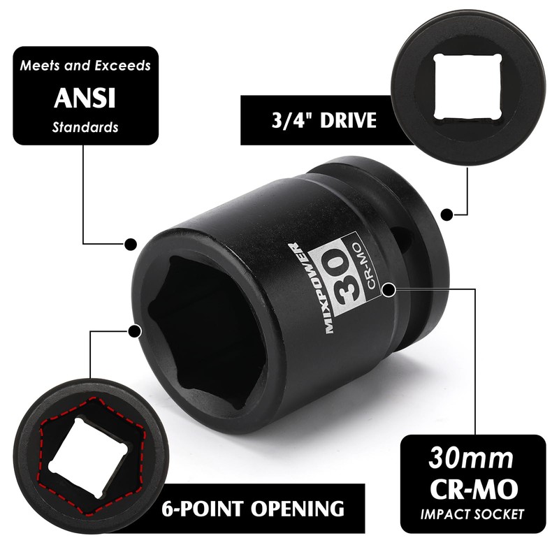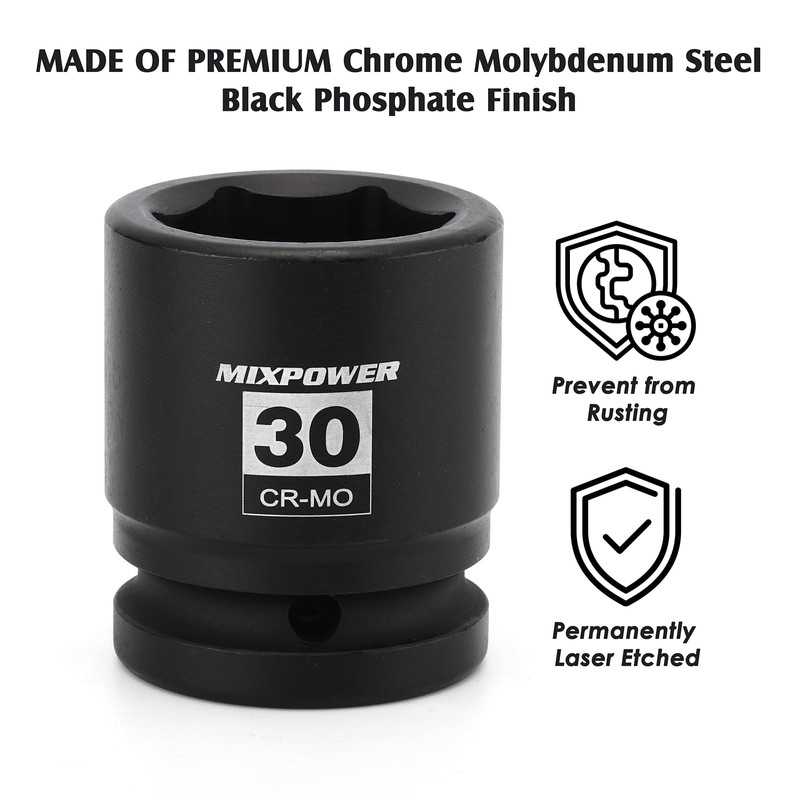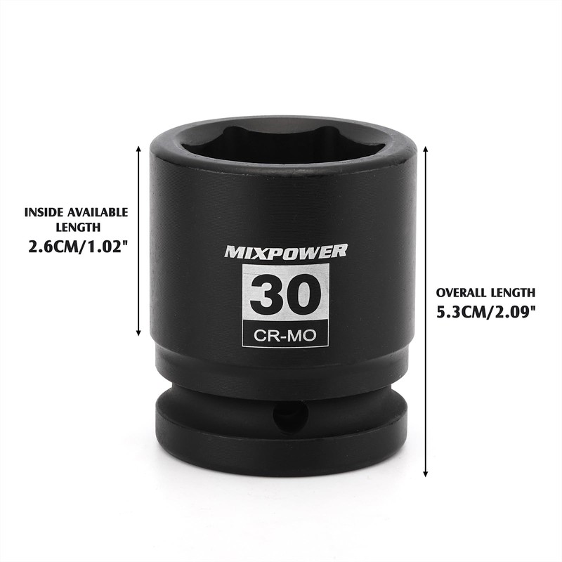 MIXPOWER 3/4" Drive Shallow Impact Socket, 30mm, CR-MO, Metric, 6 Point, Axle Nut Impact Grade Socket for Easy Removal