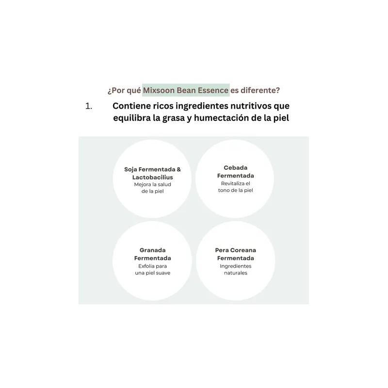 La Mixsoon Bean Essence es una de las esencias más amadas del skincare coreano por su fórmula minimalista y su poderosa acción hidratante. Ideal para todo tipo de piel, especialmente las sensibles, esta esencia vegana calma, hidrata y mejora la textura de la piel gracias a sus ingredientes fermentados naturales.