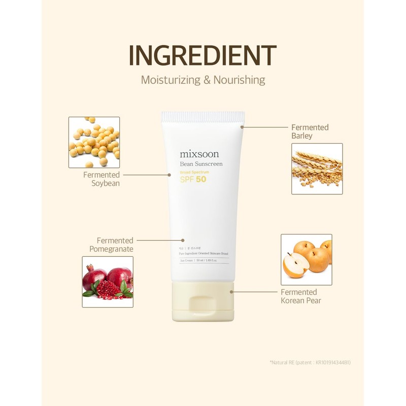 mixsoon Bean Sunscreen 1.69 Fl. Oz. / 50ml SPF 50 Airy Texture Type Lightweight No White Cast For Face Korean Glass Skin Care